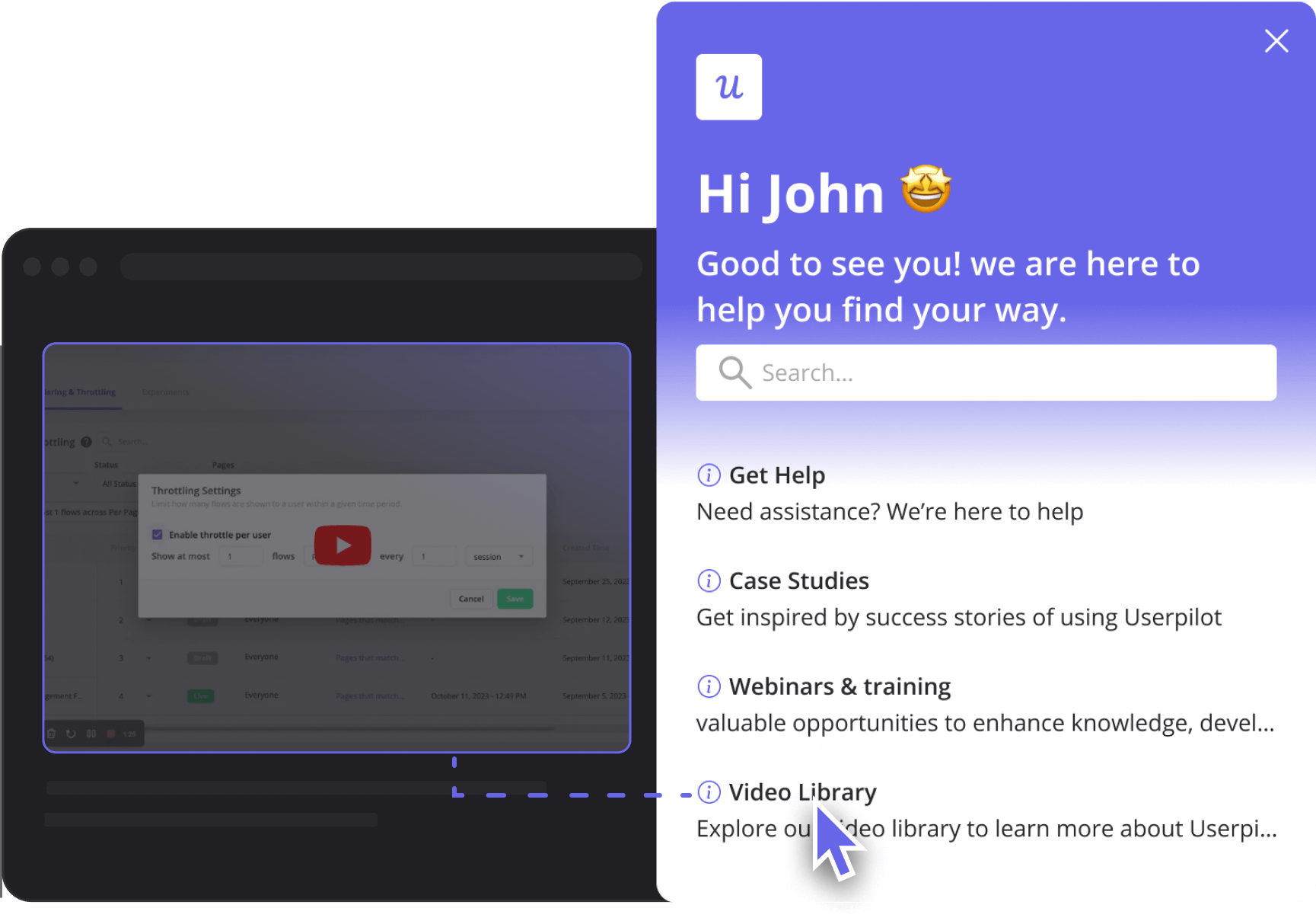 • In-app Guides: Product Walkthroughs, Checklists, Tooltips, Banners, and Resource Centers.